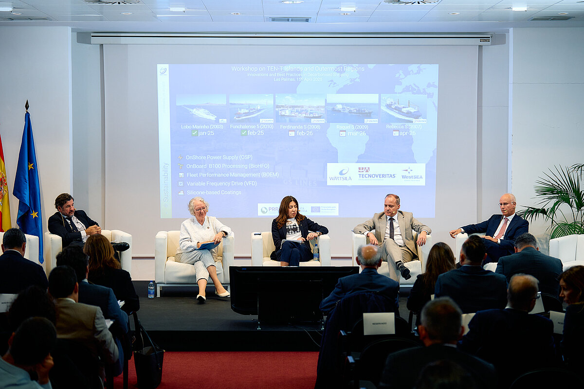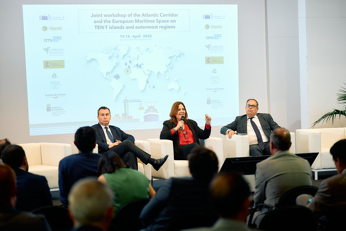 Los días 15 y 16 de abril de 2025, Las Palmas de Gran Canaria acogió la jornada “Puertos insulares y regiones ultraperiféricas en la red TEN-T”, organizada por el Ministerio de Transportes, el Comisionado del Corredor Atlántico y la Comisión Europea.